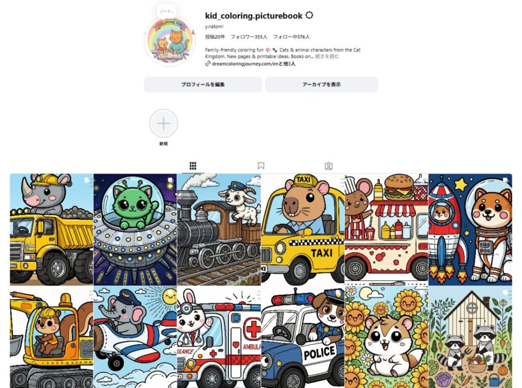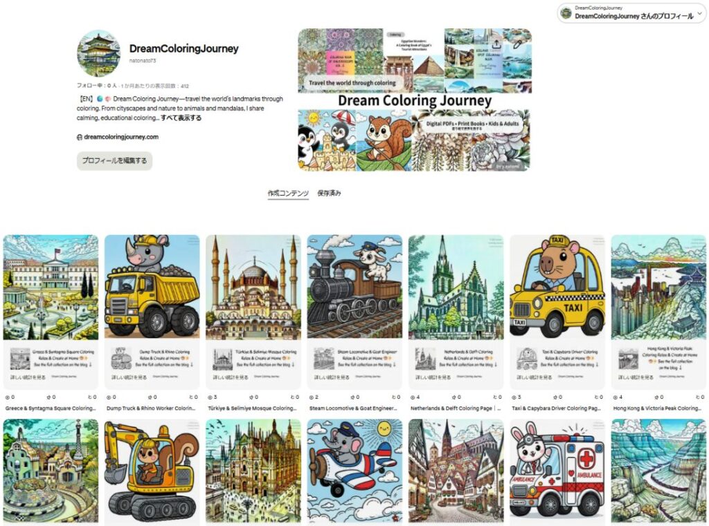 - 塗り絵書籍の中から、ベストな塗り絵テーマを選定しピンを作成しています。