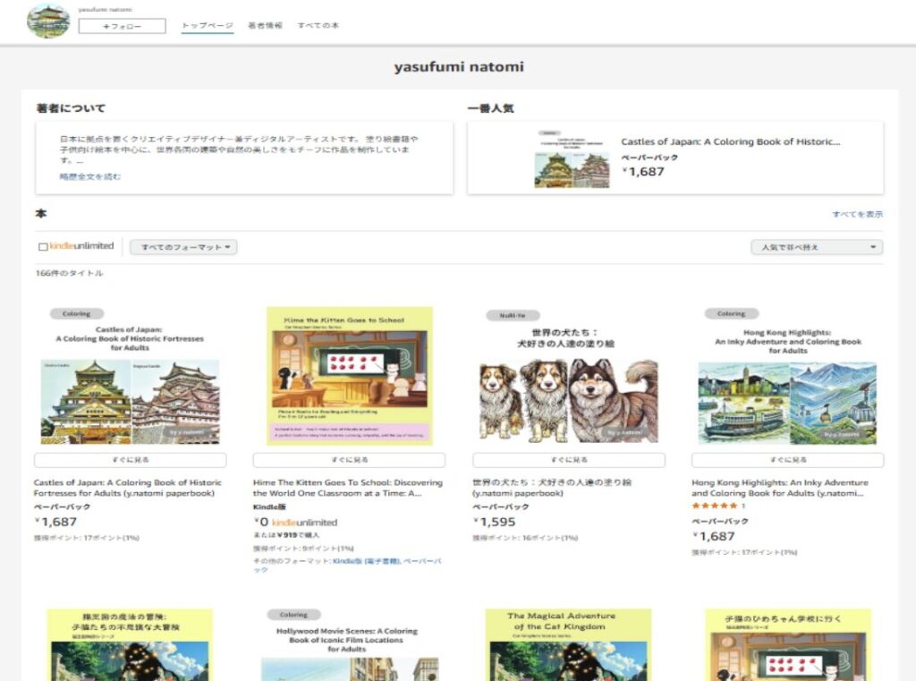 アマゾンで販売している「塗り絵書籍(著作者ページ)」の紹介です。