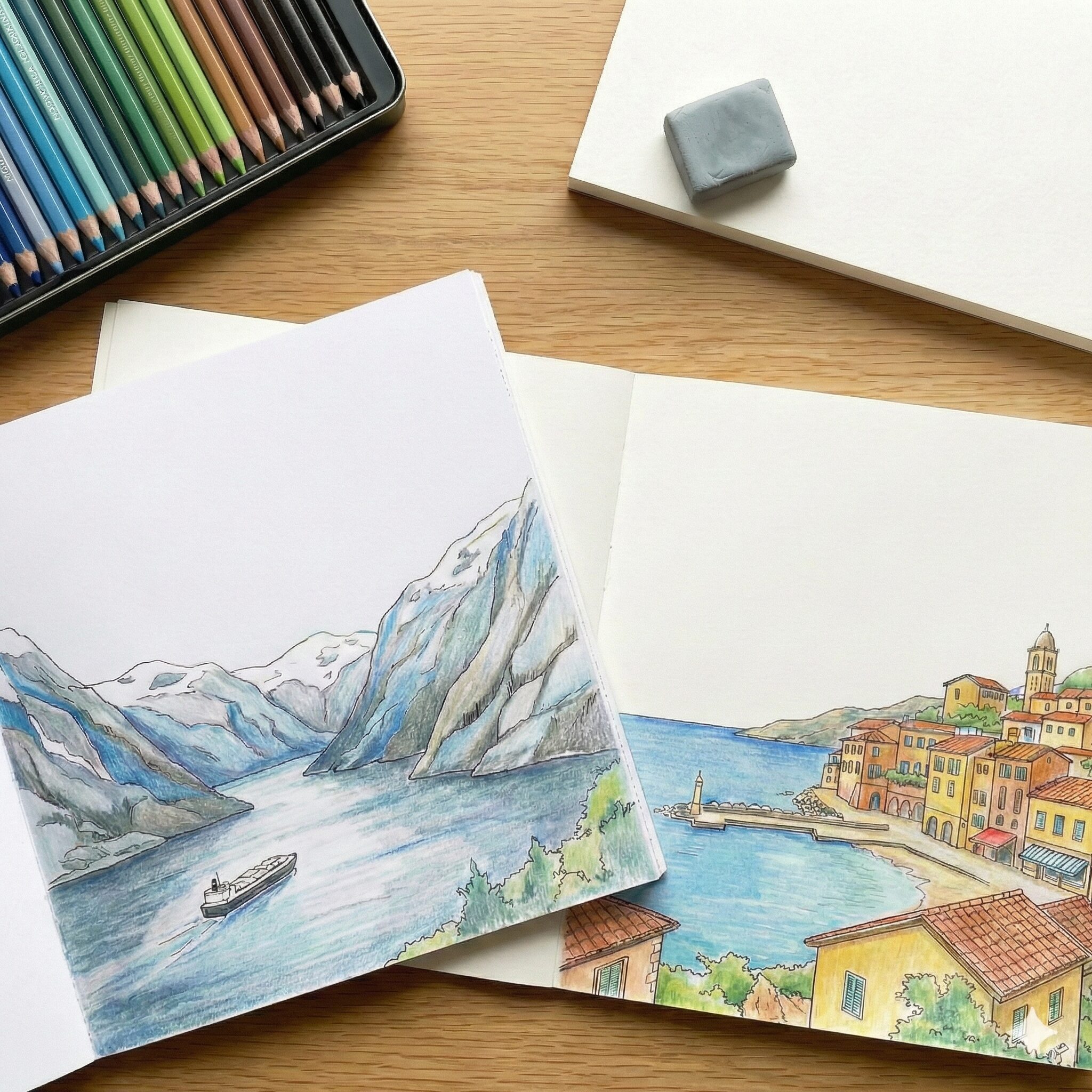 Dream Coloring Journeyへようこそ。ここは、たくさんの作品を描き続けてきた私が案内する「大人の癒し」と「親子の学び」の交差点です。 ノルウェーのフィヨルドを旅するような集中時間も、子供とテーブルを囲む笑顔のひとときも、必要なのは色鉛筆だけ。 さあ、今日の色を選んで、あなただけの新しい旅を始めませんか?