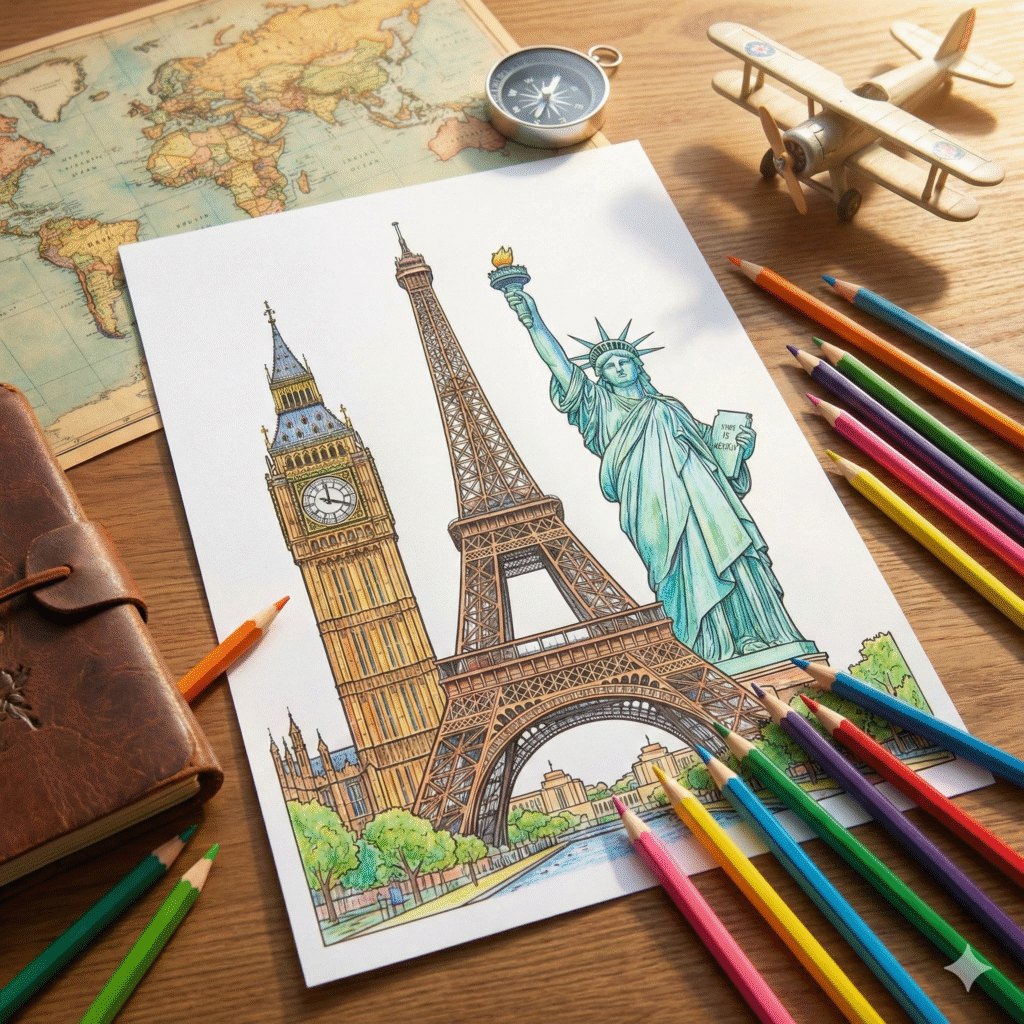 Travel is fun—but honestly, the getting around can be the hardest part. With coloring, though, you can travel the world from your desk. And once you decide the order of your colors, it’s surprisingly easy to bring out the “feel” of a landmark. This page is a “travel-through-coloring” guide designed to solve country-by-country problems like:“I want my landmarks to look great, but the stone looks flat… the water turns muddy… the gold and vermilion of temples and shrines look cheap…” Bottom line: most hesitation stops right here 👇 Choose your base colors (the foundation layers). Add accent colors (a hint ...
