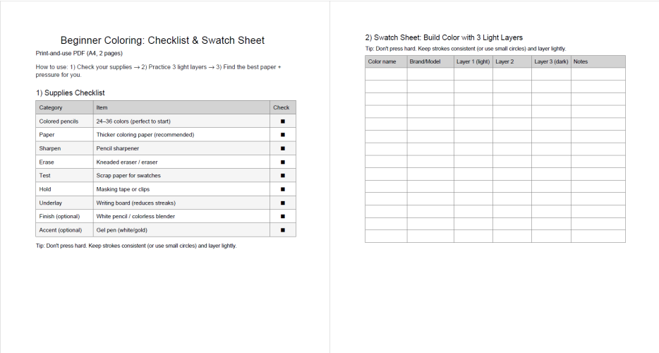 [Free Download] Beginner “Tool Checklist & Color Test Sheet”
